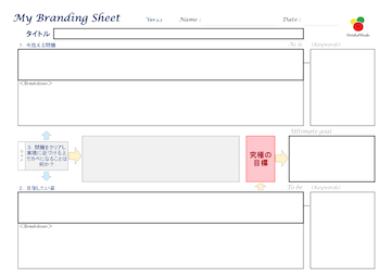 自社のブランド価値を言語化し、成長阻害要因の発見と行動の設計を行っていく際に利用するテンプレートです