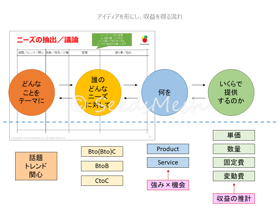 アイディアを積み重ねてくると、何となく儲かりそう!というアイディアのタネが出てきます。